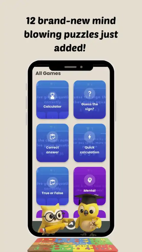 我们的数学益智游戏旨在挑战您的智力并提高您解决问题的能力,让您进入一个脑力测试的乐趣世界。这款游戏有超过 100 个关卡等你征服,为所有年龄和技能水平的玩家提供引人入胜的身临其境的体验。每个级别都有一个独特的谜题,需要结合逻辑、策略和数学运算来解决。无论您是经验丰富的数学爱好者,还是只是喜欢拼图游戏的人,我们的游戏都旨在为您提供无尽的娱乐和精神刺激。 随着游戏的进展,难度逐渐增加,确保你始终面对新的挑战,保持头脑敏锐和投入。谜题从简单开始,帮助您习惯游戏机制,但随着您的进步,您会发现自己要解决越来越复杂的问题,需要更深入的思考和战略规划。难度逐渐增加,使游戏适合初学者,同时仍为经验丰富的玩家提供有益的挑战。 为了帮助你一路前行,当你发现自己陷入一个特别棘手的谜题时,可以使用提示。这些提示旨在引导您朝正确的方向前进,而不会泄露解决方案,让您保持自己解决难题所带来的成就感。无论您是谨慎使用提示还是依靠提示来通过更难的关卡,游戏都确保您永远不会感到沮丧或不知所措。每天获得一次免费提示 谜题设计的多样性确保没有两个关卡感觉相同。从基本算术到更复杂的基于逻辑的挑战,每个谜题都提供新鲜而令人兴奋的体验,使游戏感觉充满活力和吸引力。直观的控件和干净、用户友好的界面使您可以轻松地直接进入动作,而充满活力的视觉效果和令人满意的声音效果则增加了游戏的整体乐趣。 除了作为娱乐来源之外,我们的游戏还是提高数学技能和认知能力的绝佳工具。经常玩这些益智游戏可以帮助提高您的思维能力,增强您解决问题的能力,并促进您的整体大脑健康。无论您是为了好玩还是想锻炼大脑,我们的游戏都能提供挑战和乐趣的完美结合。 你准备好测试你的智慧,看看你能走多远吗?有超过 100 个关卡等你探索,还有无数谜题等你解决,旅程才刚刚开始。投入其中,迎接挑战,成为数学谜题大师!”