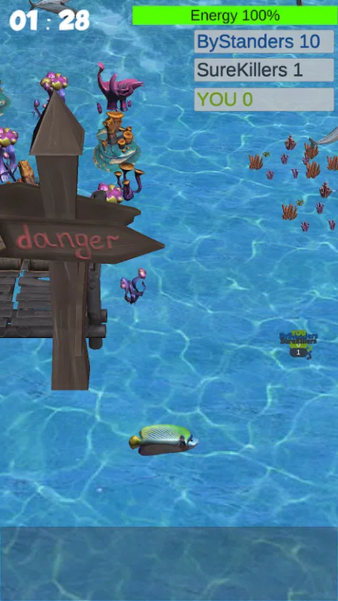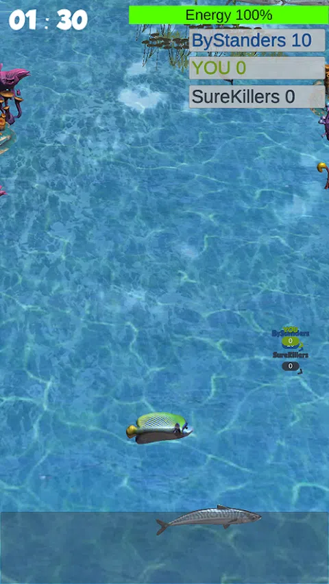 准备好与海洋生物一起狩猎。您可以选择所需的鱼类型。选择鱼种后,首先捕捉闲鱼。然后追击数量比你少的对手。 较大的组将较小的组包括在其组中