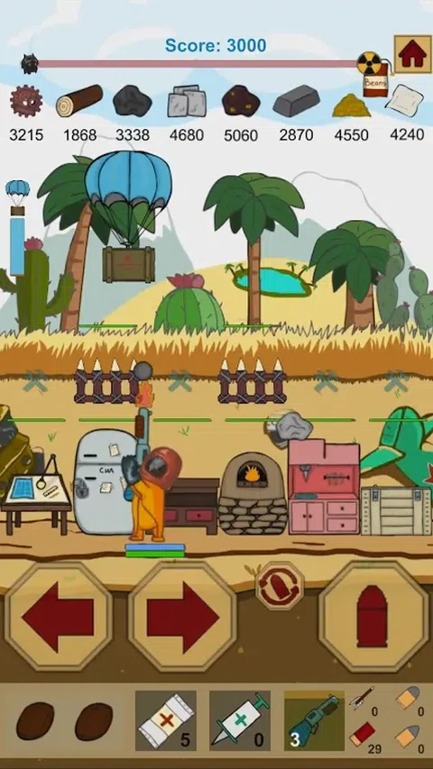 后世界末日世界中的一款动态游戏,主要目标是尽可能长时间地坚持下去,保护您的基地免受敌人的炮弹袭击。 游戏特色: 在敌人炮弹的射击下收集资源 建立基地并用路障捍卫它 学习使用新技术的蓝图 创建物品以获得最佳游戏体验 在熔炉中熔化矿石,获得新机会 升级您的建筑物 4种类型的位置 26种敌方炮弹 提高您的高分并挑战您的朋友