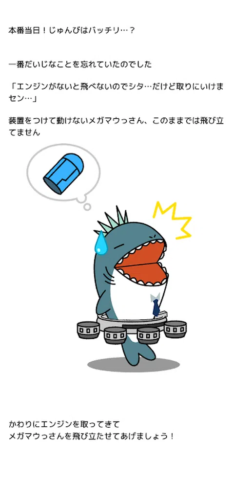 这个游戏是一个故事,通过解决位于台场的七个检查站的任务,实现了海滨地区旅游大使 Megamau 的“我想在天空中飞翔”的梦想。 通过解决各地的任务,您可以收集到 Megamau 忘记的天空飞行引擎。 收集引擎并将它们交付给在维纳斯堡垒等待的 Megamau