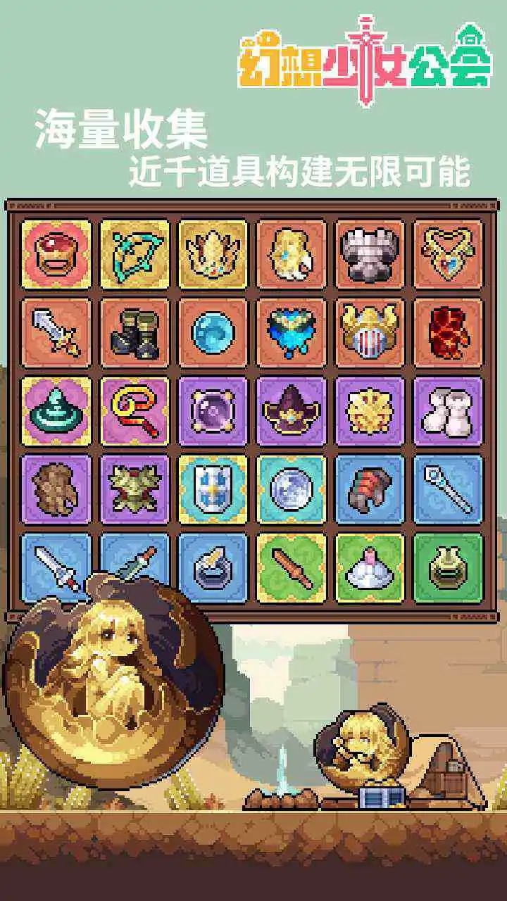 《幻想少女公会》是一款像素风格的魔物娘题材放置卡牌游戏。玩家将扮演冒险公会经营者,邂逅各具特色的可爱幻想少女,通过阵容搭配、BD构建、角色养成等玩法,在充满未知的幻想世界中探索并收集丰富装备,体验独特的冒险旅程。 ——邂逅异族少女,10+幻想主题—— 每日登录即送招募机会,首次十连抽必得人气传说角色「圣剑之灵」!与来自异世界的幻想萌物相遇,组建专属小队开启冒险之旅——10余种地形主题、110+魔物少女等你收集,史莱姆、元素系、动物系、幽灵系等多样角色一应俱全! ——悠闲异世界,竖屏摸鱼随拿随放—— 采用竖屏设计,单手即可轻松操作,搭配放置式战斗系统,带来「摸鱼式冒险」的轻量化游戏体验。将奇幻冒险融入日常生活,随时随地开启一段悠闲的异世界之旅,让冒险成为你生活中的轻松点缀! ——海量珍奇装备,超萌像素收集—— 在10余张冒险地图中,隐藏着800+件珍奇装备!为幻想少女们收集装备、搭配羁绊、构建独特BD。反伤流、控制流……多种策略战斗体系任你选择,既可尽情享受头脑风暴,也能一键配装,轻松体验策略乐趣! ——轻松冒险,奇遇探索明媚幻想—— 融合治愈养成、像素收集与策略战斗,带来轻松多重的游戏体验。在悠闲的异界探险中,收集属于你的幻想少女与珍稀装备,开启独一无二的冒险之旅,即刻出发,探索无限可能!