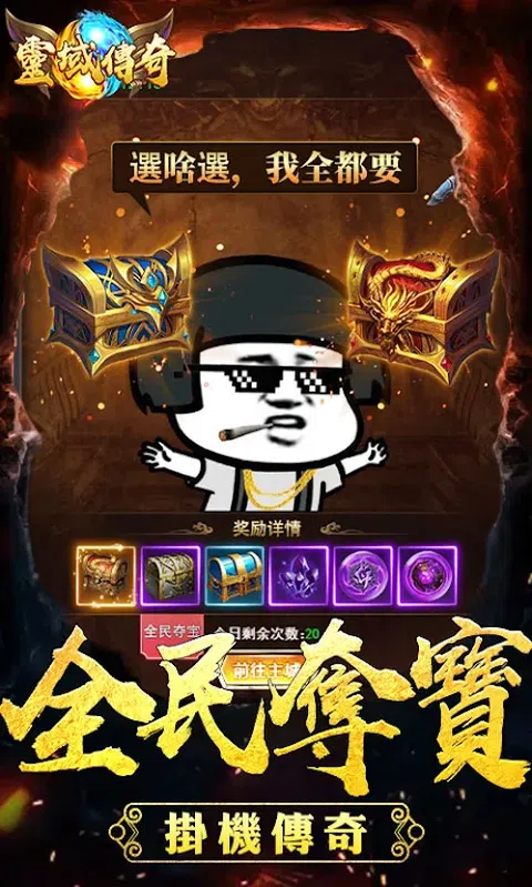 【经典传奇 正版授权】 2021年最硬核的传奇,更高品质的画风,经典的战、法、道三职业再现英雄合击。重塑经典,再战传奇。 兄弟集结,杀入沙城,问鼎天下。三职业经典配合,热血攻沙,再现热血恢弘场面。 【秒打装备 超高爆率】 2021年最具诚意的传奇,秒打装备,超高的爆率,神装遍地,还有诸多元宝等你来拿。 在《灵域传奇》里,和兄弟们一起快意恩仇。野外红名,请用你的实力说话,PK爆装,不服立马! 【一键回收 装备换金】 2021年省钱又省心的传奇,装备一键回收,回收之后即可获得大量元宝。同时游戏还能一键轻松挂机,让你随时随地都可以轻松畅玩游戏。 【万人攻城 怒霸沙城】 2021年最热血的传奇,游戏以竖屏来进行呈现,热血群攻 自由PK。红名爆装,跨服战场激情厮杀,喊上你行会的兄弟们一起来征战沙城吧