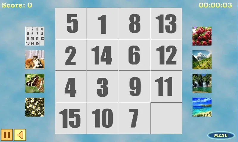 玩经典的十五拼图。 按顺序排列数字。 或者用碎片制作图像