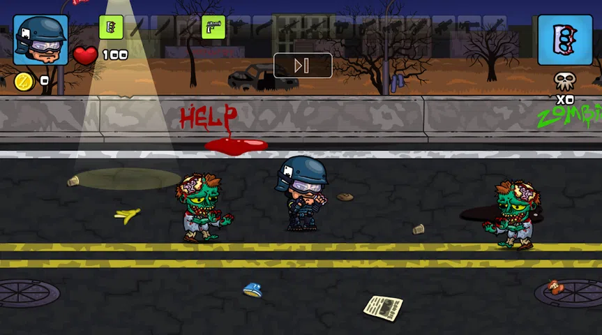 在僵尸启示录中,夜晚的街道并不安全。 为了生存,人们需要躲避僵尸。 结果,您被派去清理一座充满僵尸的建筑物。 您可以清除多少条走廊并在僵尸群中生存? 不要让僵尸接近你。 在你去的僵尸人群中。使用武器对抗僵尸。触摸屏幕进行瞄准。尽量坚持下去