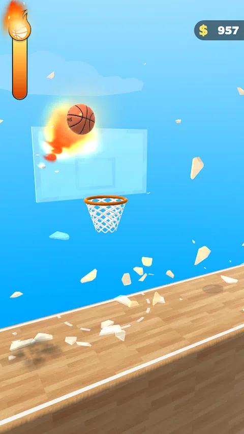 弹跳球以瞄准篮筐 以完美的时机将其砸入篮筐 触发火怒模式以获得更多积分 掌握游戏并成为粉碎之王