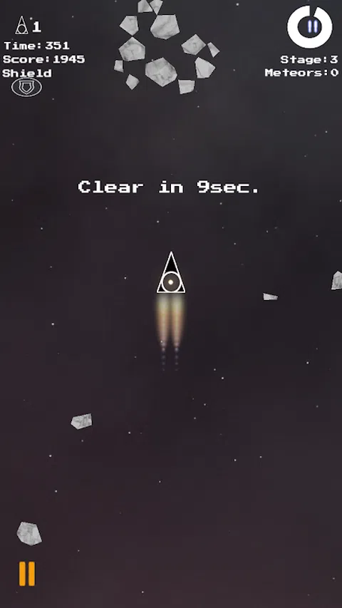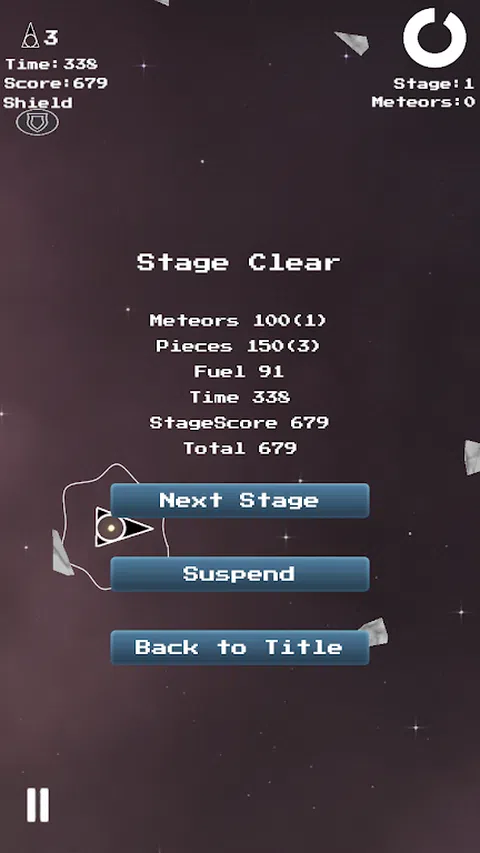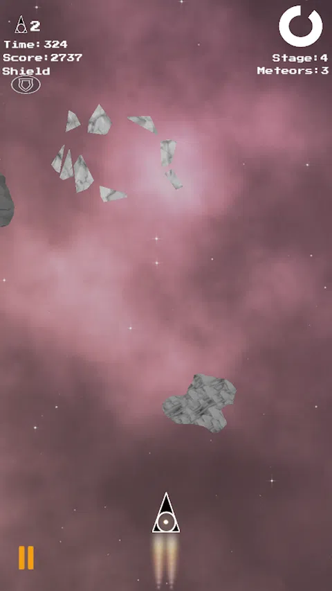 这是一款复古射击游戏,就像 1970 年代后期的街机游戏一样。控制飞船并摧毁陨石。策略是很好地考虑惯性。您还可以在完成关卡时玩奖励游戏
