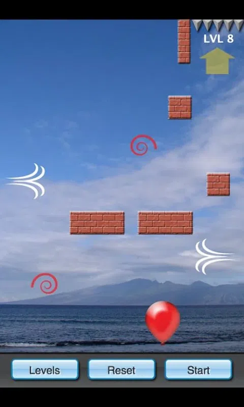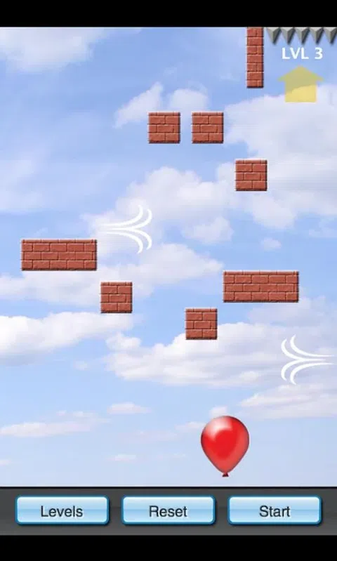 游戏的目标是爆破气球,以便您可以解锁下一个级别。拖动风图形来吹气球,使其漂浮在尖刺中并将其爆破。您将需要绕过障碍物和旋风