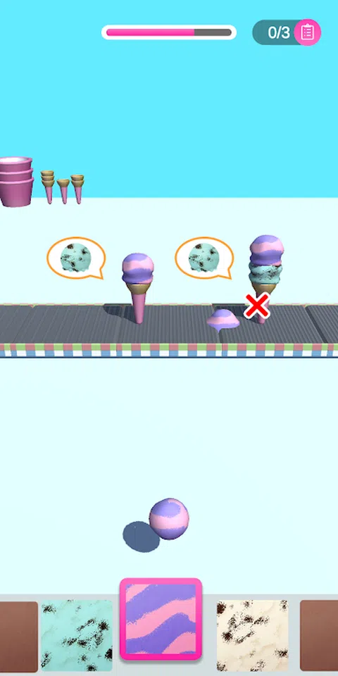 让我们堆叠冰淇淋! 游戏的目的是尽可能礼貌地将1-5勺冰淇淋一一堆叠