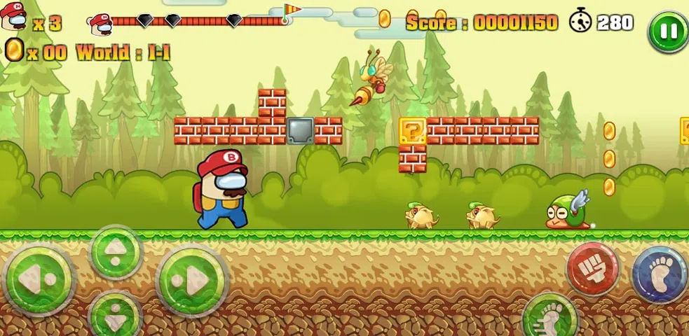 超级冒名顶替者的冒险 - 丛林世界 2021 是一款可爱的经典平台冒险游戏。您将参加激动人心的丛林世界冒险,以营救被怪物绑架的公主。在鲍勃的超级世界中,您的任务是帮助冒名顶替者鲍勃穿越神秘的丛林,跳过障碍物,并超级冒名顶替邪恶的怪物在最终目的地拯救美丽的公主。该游戏是免费游戏,您可以离线玩。 超级鲍勃的世界冒险自豪地展示了超级比诺围棋的成功,这个超级英雄角色拥有更多关卡、更多敌人和怪物、超棒的图形和更好的体验。在这个新的冒险游戏中,只需点击屏幕,跳跃并奔跑。做超级奔跑,在半空中进行单跳和双跳!收集所有硬币、钻石和宝石,进行史诗般的战斗,成为丛林英雄,并完成所有级别! 那是一个美丽的晴天,鲍勃和冒名顶替者以及他的情人在村子里闲逛,然后一个邪恶的怪物出现并绑架了比诺的公主。游戏结合了传统的跳台,并具有许多现代艺术元素。玩游戏时,您可以记住快乐时光 为了拯救他的爱,比诺必须独自穿越不同的世界,与众多恶毒的怪物作战。因此,在超级鲍勃的围棋2中帮助他获得强大的能力,以击败冒险中的所有敌人,以拯救他的爱人。 特点 - 美丽而高品质的图形 - 惊人的音乐和声音效果 - 隐藏的扭曲世界。 - 怪物和大老板之战