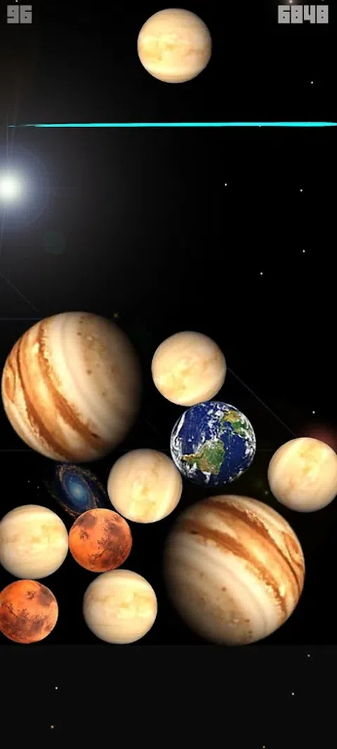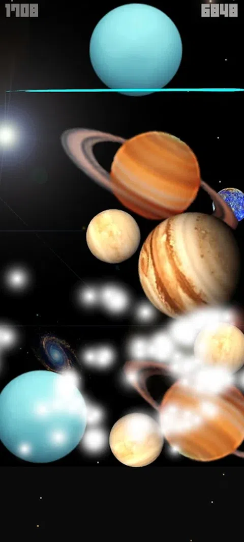 水星金星地球火星木星土星天王星海王星在我的宇宙中排列。最后,我做了一个明亮的太阳,使游戏更有趣