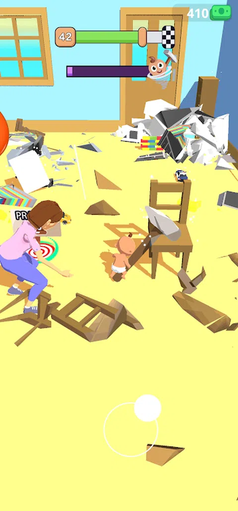 在这个游戏中,玩家控制婴儿角色。这个游戏的主要目标是摧毁房间里的所有物体,不被妈妈抓住
