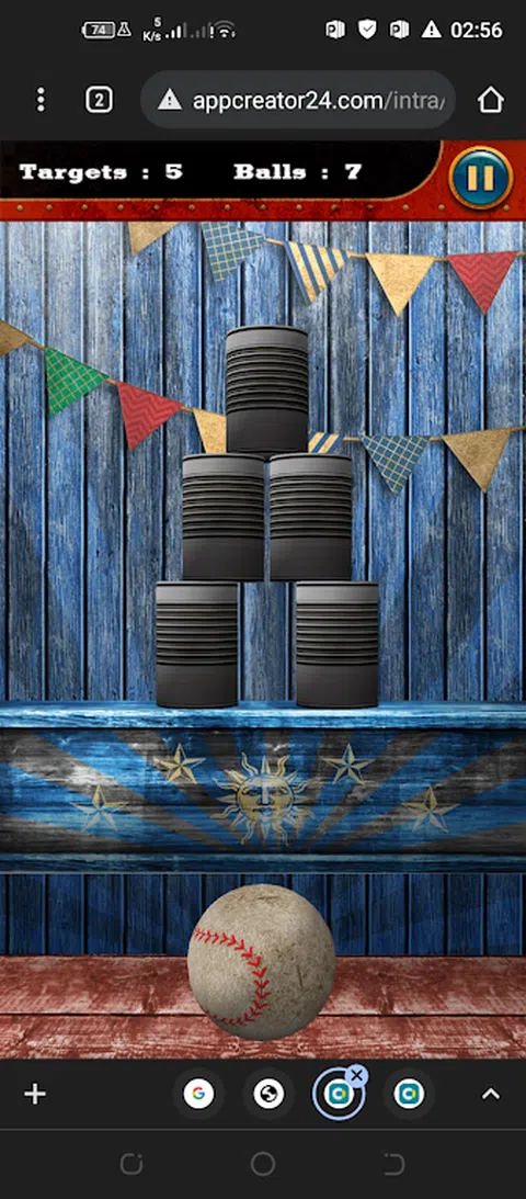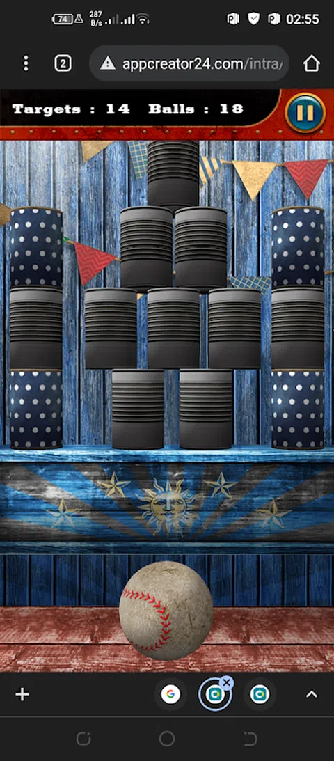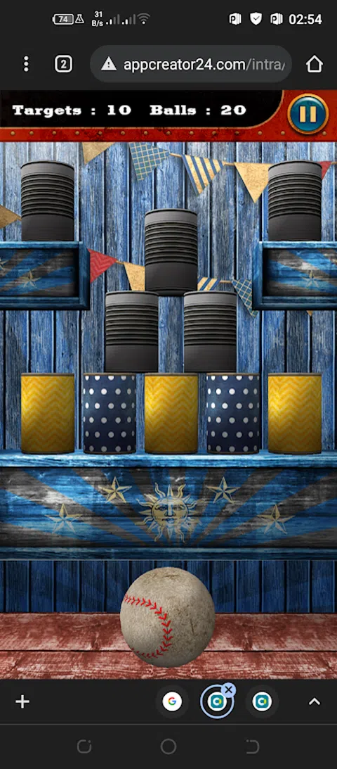 这是一场球类游戏,你瞄准罐子,以便在所有球和 bamkot 结束之前将它们全部击倒