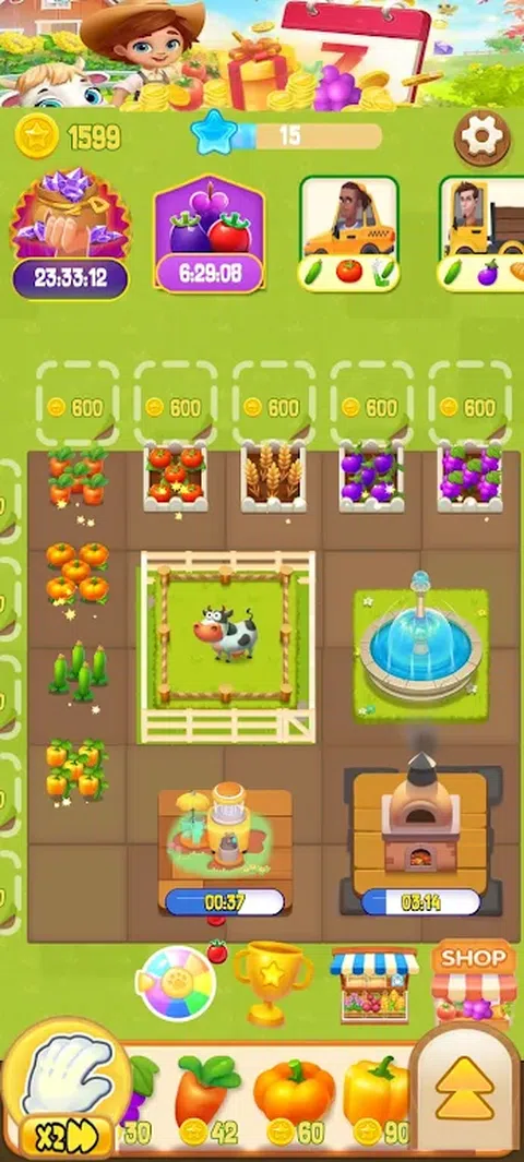 休闲农场-收获季节是一款休闲益智游戏。玩家可以在游戏中利用合并机制种植各种美味的水果和健康的蔬菜。 你可以在市场上出售它们,也可以扩大农场,充分利用你的收获来扩大农场。创建你自己的农场世界! 游戏特色 1.轻松体验农民生活,收割农作物、出售农作物均可获得金币 2.你可以探索扩张土地并建造自己的农场 立即下载并享受它
