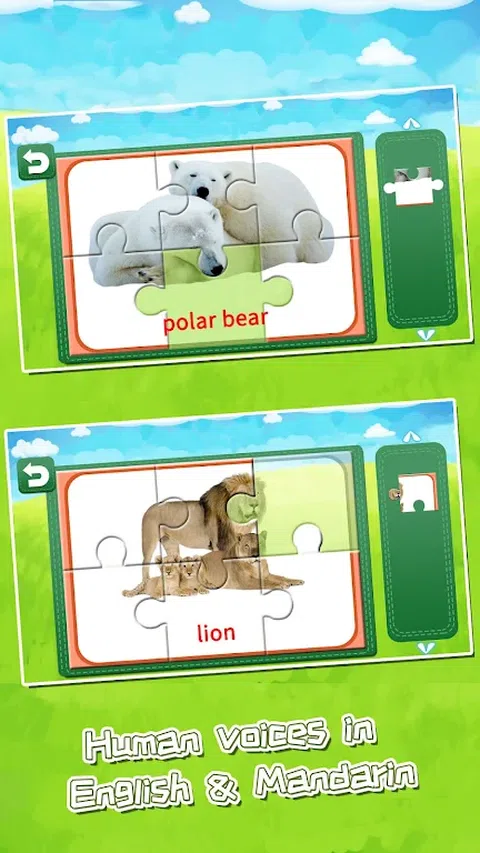 宝宝拥有好的逻辑思维,是每位父母梦寐以求的,这样可以让宝宝赢在起跑线上。 可是,怎样锻炼宝宝的思维逻辑能力,也是父母们所头疼的事情。这是一款针对2-5岁的儿童设计的动物认知拼图教育游戏, 精选了日常生活中常见的事物,采用多种形式的有声卡片,贴合宝宝的兴趣!融汇了认汉字、学英语等多种功能。 内容丰富,图文并茂,知识性强,读、写、认三位一体,对提高儿童的思维能力、知识性有着良好的启迪作用。动口动手,轻松完成孩子的认知、语言启蒙。中英双语字条搭配色彩活波的可爱图片,让小孩认知生活世界的各个方面;收录中英文单字发音,孩子聆听的同时也能跟着念,重复听重复读,更容易深入脑海里。给宝宝视觉、听觉、触觉等多方面的刺激,方便宝宝对周围事物的认知,促进宝宝大脑的发育。 ,不知不觉中就能学到许多知识,帮助您的宝宝通过视觉、听觉、触觉全方位感知这个世界。当孩子将混乱的拼块一块块衔接起来,直至重新组合成功的时候,孩子会感受到成就感,这是提高孩子兴趣很重要的元素,也可以从中学习如何运用逻辑思考的方法来解决问题。 玩拼图能学习推理思考能力,因为小朋友会经由尝试不同的选择,到决定正确的一片放下去,也就是经过假设、判断到选择的过程,让他学习运用逻辑来解决问题的方法。许多宝宝在一开始接触多片的拼图时,自然就知道要从边缘开始拼,这就是学习顺序、秩序及逻辑的意义,并且从观察与判断中学习分类,他得观察范例上的正确拼法,才能拼出正确答案。通常拼图都是由日常生活中拼起,所以小朋友要熟悉身边的事物,才能按照逻辑拼出正确的图形,除此之外,还可以培养孩子的耐心及专注力,让他可以坐得住的做一件事。玩拼图能学习推理思考能力,因为小朋友会经由尝试不同的选择,到决定正确的一片放下去,也就是经过假设、判断到选择的过程,让他学习运用逻辑来解决问题的方法。值得注意的是,宝宝天真烂漫、好奇心重、喜欢游戏,因此拼图对他们很有吸引力。但与此同时,他们也缺乏耐心、容易 放弃,在拼图游戏进行到一半时,他们很可能因为某一片拼图不知道该放到哪里而崩溃放弃,也可能注意力很快被其他玩具和游戏吸引走。在这个时候,爸爸妈妈要给予孩子适当的鼓励,让他们坚持完成拼图,这不仅有利于培养孩子的耐心,也能在拼图完成后增长他们的自信心。 特色 1.快乐拼图,聪明认知,潜能启发 2.多主题细分支,图片活波可爱 3