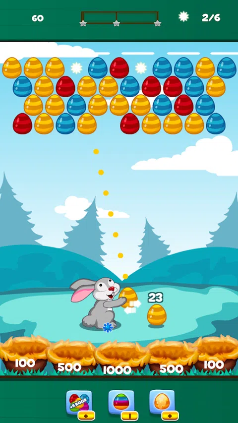 射手泡泡蛋 - 这款著名的游戏现已在 Android 上推出,具有吸引人的功能、流畅的图像和效果。 * 尖端: - 触摸屏幕然后松开进行拍摄。 - 摧毁至少 3 个相同颜色的鸡蛋即可得分。 - 不要让鸡蛋接触地面,你就会失败。 - 尝试击中 X2、X3、X4 以获得多重得分。 - 巧妙而准确地射击,通过掉落消灭它们。 * 特征: - 精美的图形和炫酷的效果。 - 有趣的声音
