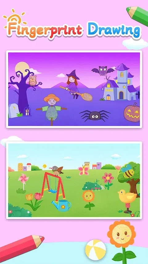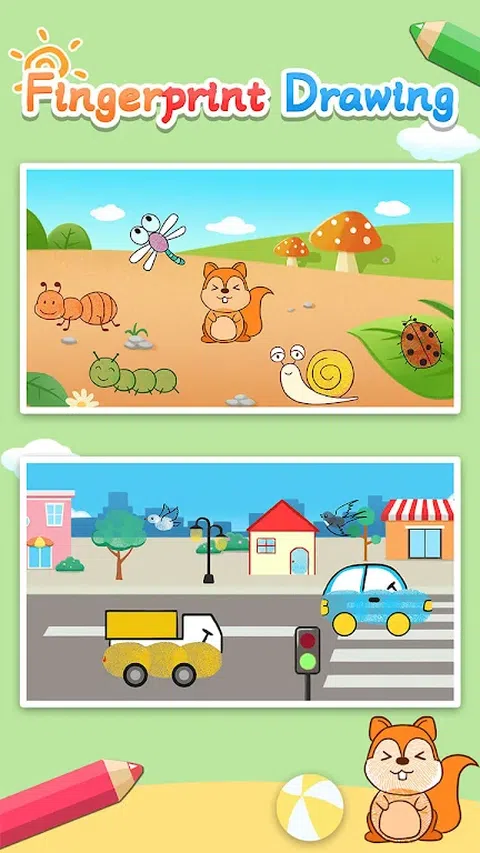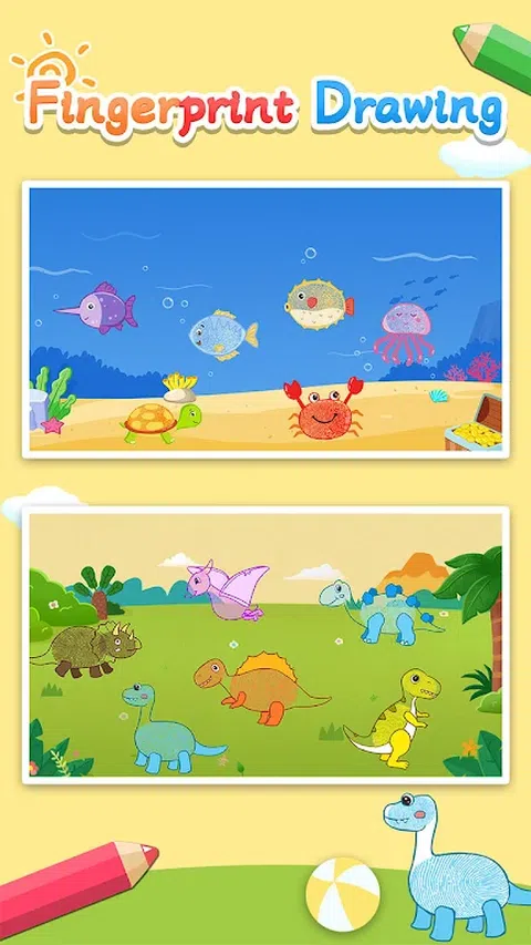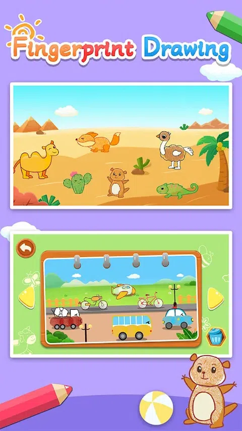 指纹图画是一款儿童艺术启蒙教育软件。它结合了简笔画、绘画和着色。它还指导孩子们学习绘画,如何绘画和着色图纸。帮助开发孩子的绘画天赋。它由许多艺术材料、卡通和漫画生动的图像组成。只需滑动他们的手指并点击一下即可绘制图片。然后创建自己的指纹画,简笔画,手指画等风格。快来练习和创作您的艺术作品! 特点: 1.学画画 - 教学内容和指南丰富多彩,生动有趣,激发孩子们对艺术和绘画的兴趣。 2.指纹绘画 - 指纹绘画的使用简单而有趣。男孩和女孩都可以轻松学习绘画,激发儿童的艺术潜力。 3.创意画板 - 多种绘画材料供儿童选择。让孩子们自己做决定并独立选择。培养孩子自己的独立性和解决问题的能力。 4.彩色画笔 - 可以使用多种颜色的画笔供孩子们绘画和涂色,这样孩子们在画板上绘画时就可以识别颜色。锻炼对颜色的敏感性并发展美学。 5.早期教育 - 父母和孩子可以一起画画,创作有趣的亲子画,拉近父母与孩子之间的距离,拉近亲子关系