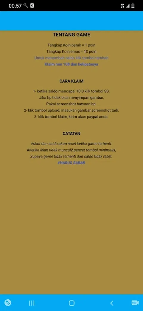 如果您想获得奖励,请连接到互联网。 只需要一个小策略来获得奖励。 捕捉银币 = 1 点 捕捉金币 = 10 点 要添加余额,请单击添加。 收集尽可能多的余额。 耐心玩耍并获得奖励