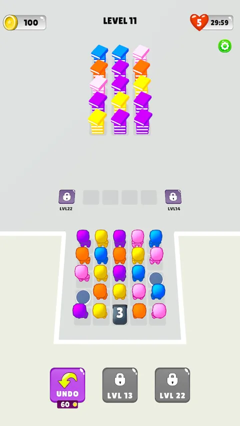 准备好进入激动人心的色彩匹配益智冒险!在这个烧脑的游戏中,您将通过两个交互式网格和一个独特的匹配区域来测试您的策略和匹配技能。根据颜色将角色与书架匹配,并精确地征服每个级别! 怎么玩: - 移动角色:点击以在网格上移动彩色角色。 - 匹配颜色:根据颜色将角色与成堆的书对齐。 制定战略:使用有 4-5 个插槽的匹配区域,让您的移动有意义! - 输赢:将所有角色与书籍匹配以完成关卡。如果您用完匹配区域中的插槽,则关卡失败! 主要特点: - 简单直观的控制—只需点击并移动! - 难度不断增加的益智谜题。 - 在多个关卡中测试您的配色技巧。 - 有趣、充满活力的视觉效果和轻松的游戏体验。 您能掌握所有级别并将每个角色与完美的书堆匹配吗? 立即下载,开始你的益智之旅!