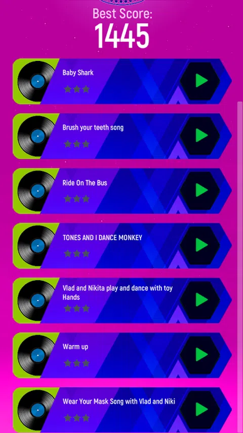 嘿弗拉德和尼基游戏歌曲的粉丝们 现在您可以免费玩 Vlad 和 Niki Hop Tiles。 来吧,随时随地播放并享受音乐。将这个有趣的游戏作为礼物和特别的音乐分享给大家。 这个游戏是关于在你面前的瓷砖上移动球的技巧。使用 Tiles Hop:Vlad 和 Niki Hop Tiles。 弗拉德和尼基跳瓷砖!这将是您放松和享受的最佳游戏。 怎么玩 触摸、按住然后拖动以使球在图块上跳跃。 不要错过瓷砖! 现在您可以上传自己的歌曲以便稍后播放 享受为每首歌曲设计的音乐和挑战。 球将跳至 Beats Drop。聆听音乐的节拍,跟随节奏并利用您的音乐反应将球从一块瓷砖引导到另一块瓷砖。 以下歌曲 Hits Vlad 和 Niki Hop Tiles: # 鲨鱼宝宝 #刷牙歌 # 乘坐巴士 # 音调和我跳舞猴子 # 弗拉德和尼基塔用玩具手玩耍和跳舞 # 热身 # 与 Vlad 和 Niki 一起戴上你的面具之歌 游戏特色 播放您最喜欢的歌曲,随着音乐一起跳动 精美的环境和画面效果 非常美丽又好听的放松歌曲 不同的背景给你每次玩都有新的体验。 打破你的最好成绩并向你的朋友发起挑战 在这款令人难以置信的美妙音乐游戏中,在神奇的音乐方块上弹跳、聆听节拍并尽可能跳跃,现在免费向世界各地的所有 Niki 和 Vlad 粉丝开放。 该游戏将为音乐爱好者提供游戏vlad和Niki歌曲Hop Tiles的全新体验。 所以,让我们一起玩并享受游戏吧!