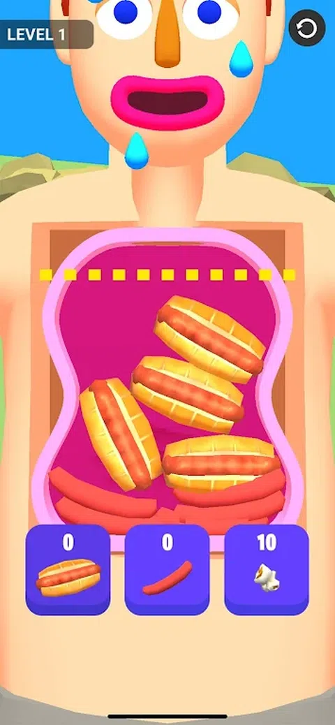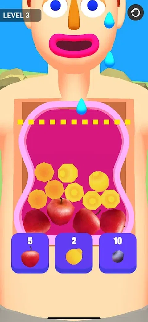 让我们吃掉所有的东西吧! 不要越界,评估商品的尺寸,并小心订购。 一旦你吃掉了一个物品,你可以通过点击它来把它放回去