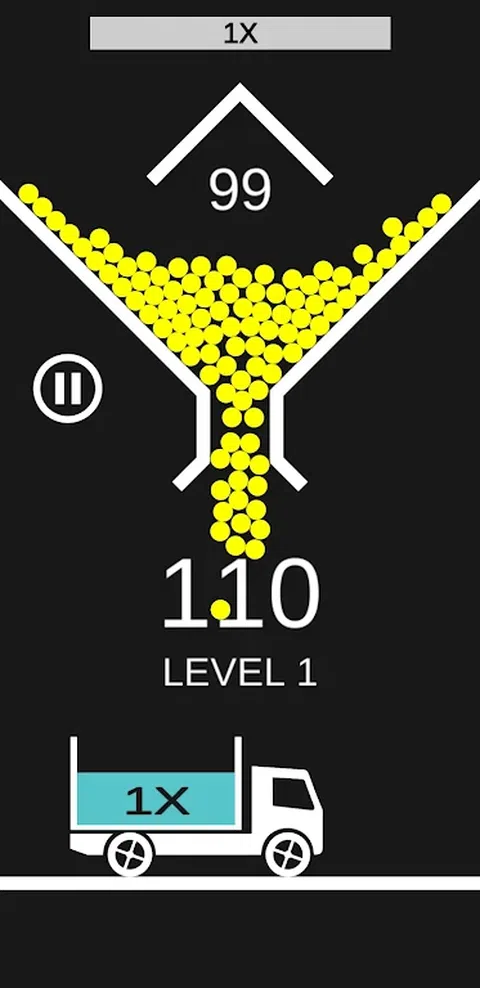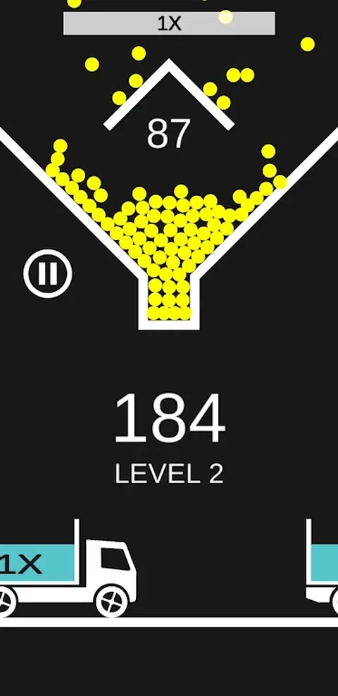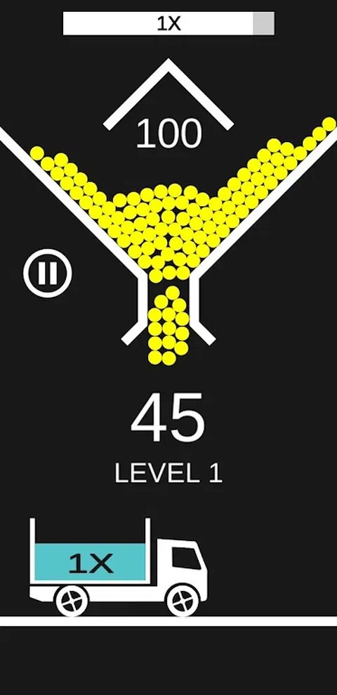点击屏幕以释放球,您需要在完美的时机释放球,以便球落入卡车。您进入卡车的每个球都会奖励您不同的积分,具体取决于卡车分数乘数。如果球错过了卡车,它就会消失。当您失去所有100个球时,游戏就结束了。游戏是无止境的,您唯一的目标是尽可能多地获得得分