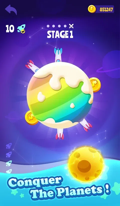 怎么玩: 1.点击发射你的火箭 2.探索并征服新行星 3