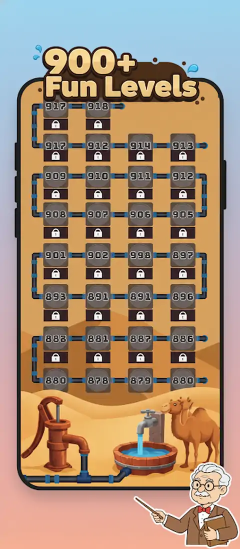 在沙漠管道中踏上激动人心的冒险,在沙漠中心考验您的解谜技巧!旋转并连接管道,将水从地下泵引导到地面水龙头,确保骆驼解渴。这款游戏拥有超过 600 个具有挑战性的关卡,提供无尽的引人入胜的游戏时间。 【游戏特色】: 超过 600 个关卡:潜入大量关卡,每个关卡都经过独特设计,旨在测试您的逻辑和解决问题的能力。从简单的开始到令人费解的谜题,总有新的挑战在等着你。 美丽的沙漠主题:让自己沉浸在令人惊叹的沙漠环境中,制作精美的图形使干旱的景观栩栩如生。看着水流过管道,为口渴的骆驼带来缓解。 直观的控制:只需点击即可旋转管道并为水创建一条路径。直观的控件使所有年龄段的玩家都可以轻松上手并玩游戏。 增加难度:随着您的进步,谜题变得更加复杂,需要战略思考和仔细规划。您能掌握所有级别并成为终极管道拼图冠军吗? 离线游戏:随时随地享受游戏,即使没有互联网连接。非常适合长途旅行或需要在旅途中快速解决难题时。 定期更新:请继续关注定期更新,这些更新会带来新的关卡、功能和改进,以保持游戏的新鲜感和刺激性。 【玩法】: 旋转管道:点击管道以旋转它们,并创建从泵到水龙头的连续路径。 连接路径:确保所有管道正确连接,让水流顺畅。 加满水箱:将水引导至水箱,为骆驼解渴并完成关卡。 进入新关卡:每个完成的关卡都会解锁下一个关卡,难度会越来越大,挑战也会越来越多。 [为什么你会爱上 Desert Pipes]: 引人入胜的游戏玩法:策略、逻辑和精美视觉效果的结合,带来令人上瘾的愉快体验。 适合家庭的乐趣:沙漠管道适合所有年龄段的玩家,是挑战您的思维并与家人和朋友一起玩的好方法。 益智益智谜题:提高您的认知技能,并在您解决的每个谜题中保持头脑敏锐。 立即下载沙漠管道,开始穿越沙漠中最具挑战性的管道谜题之旅。