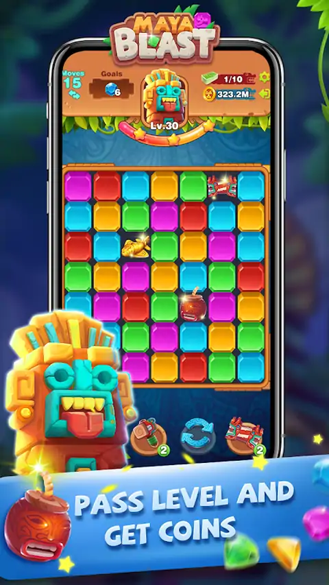 这是一个有趣的益智游戏,您可以享受它。您只需单击以移除相同的颜色立方体。 当您单击相同的颜色立方体时,它们将被清除,有些甚至会奖励炸弹等道具。 此外,还有大量的道具,例如锤子、炸弹等,供您使用。 如果您成功完成关卡,您将获得星星和玛雅人的宝藏作为奖励。 收集星星以寻找玛雅人的宝藏!你可以相信我,你会得到巨大的财富! 让我们为完成所有关卡而战!祝你好运! 游戏特色: 一键式控制非常容易玩。 超棒的图形,用户友好的用户界面。 无限关卡供您挑战! 在玩乐的同时训练大脑。 可以随意更改用户界面颜色和太阳光方向。 免费下载,随时随地玩