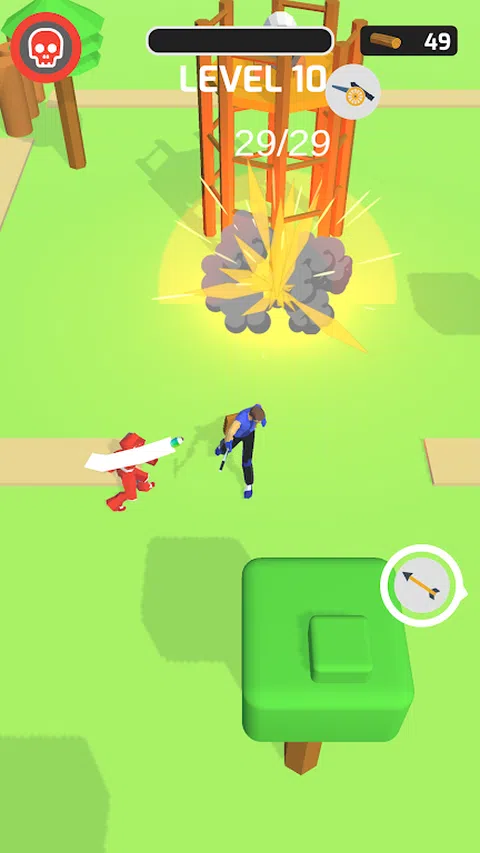 砍伐木材。 用木材建造塔楼 杀死敌人并通过关卡 享受