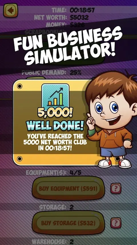 你应当多雇些人手还是投资新设备? 你该花钱买一座新仓库还是把这笔预算用在市场营销上? 你来决定! 你的目标:用最短的时间获得100万美元净值! 《纪念品大亨》为你带来令人兴奋且有趣的经营体验,你可管理你的业务并生产纪念品。游戏的一切都与业务决策和经济效益相关!游戏会你取得成功时给你奖励,如遇到失败你可随时重新开始游戏。吃一堑立马长一智!随意混合匹配你认为能达成目标的元素。 关键特性: - 极具教育性,教你的孩子预算和经济学相关知识! - 有趣且易于上手的游戏体验! - 非常直观且友好的游戏界面 - 加入5000、1万、2.5万、10万和100万净值俱乐部 - 挑战你的好友,最快成为大亨 - 教你的孩子简单的数学、商业和经济学相关知识 - 离线玩游戏!不需要互联网连接 - 全年龄段玩家都能体验到游戏乐趣