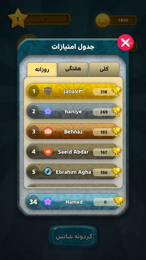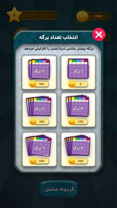 Debarna 是一款有吸引力且可爱的游戏,它会让您想起快乐的童年。通过Debarna游戏,您不会感觉到时间的流逝,您可以体验美好的时刻。 在Debarna游戏中,您可以从第一阶段的一张牌开始,随着分数的增加而增加您的牌数,并增加获胜的机会。 在Debarna游戏中,你只需要稍微集中注意力就可以轻松获胜。玩 Debarna 的方法是,您必须从卡片上的数字中找到并选择显示给您的数字。小心翼翼地完成你的卡片并获得金币。 在玩的时候,你可以看到其他用户的评论,体验精彩的游戏。 Debrena 是最受欢迎的游戏之一,它可以让您享受很长时间,并为您和您的朋友创造有趣的时刻。 在Debarna游戏中,你可以与30人同时游戏,体验一场有吸引力的比赛。你经历的关卡越多,你就越喜欢这个游戏,你想花更多的时间体验游戏的刺激。 幸运之轮 轮盘让 Debarna 的游戏变得更加有趣,您可以试试运气,赢取高达 2000 个金币。 德巴纳商店 您还可以选择您最喜欢的头像并在 Debarna 商店购买游戏金币。 记分牌 您可以在 Debarna 记分牌中查看每周和每日用户的分数,并更好地了解您的竞争对手。