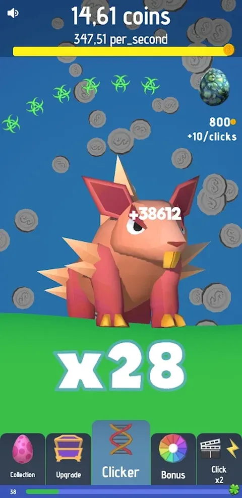 想用手指点击屏幕,以有趣有趣的方式消磨大量时间吗?那么,带有 3D 怪物集合的点击器非常适合您! 25 种怪物,您可以通过用怪物打开新蛋来购买。 在商店购买升级,喂养怪物。 通过观看广告,您可以在游戏中购买小型助推器。
