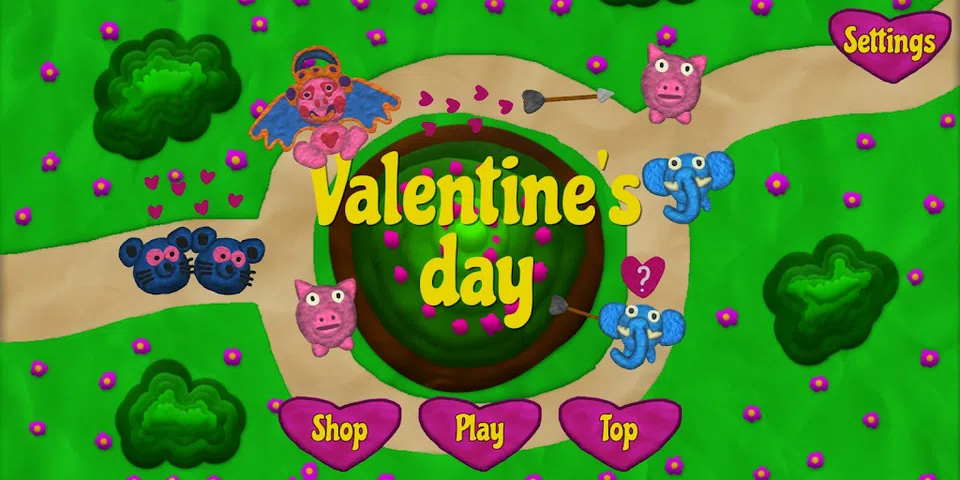 一款关于情人节的游戏,您可以扮演丘比特。您需要击中2个相同类型的角色才能获得分数。如果您击中2个不同的角色,您将失去健康