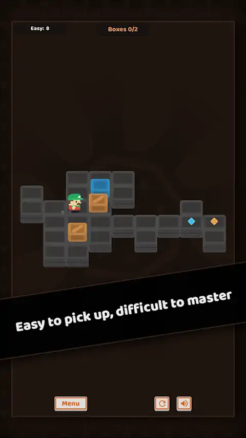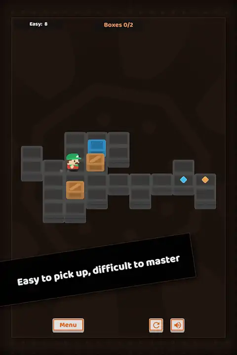 在这款受“推箱子”影响的休闲益智游戏中,将板条箱推入目标。