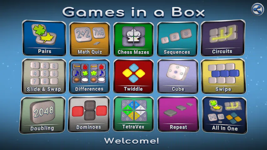 盒装游戏 - 通用逻辑合集 15个游戏的集合,以提高逻辑、计数、记忆和注意力。 - 每个游戏都有几个品种。 - 适合所有年龄段的游戏 - 适用于具有各种屏幕纵横比的智能手机和平板电脑。 - 优化了性能/功耗。 1.对 。专注力游戏也被称为匹配匹配、匹配、记忆或简称为配对。提供经典、搜索、三元组、封锁和炸弹游戏类型。 翻转棋子,尝试以尽可能少的回合找到它们匹配。 2.国际象棋迷宫 。逻辑迷宫。 根据国际象棋规则从一个棋子移动到另一个棋子,帮助国王找到通往城堡的路。 3.逻辑立方体 。Color the Cube是一个用于空间思维的3D拼图。 当立方体的表面接触到图块时,它们会交换颜色。为立方体的所有面着色。 4.电路 。类似于著名的管道游戏,管道工。滑动拼图作为变体。 连接触点以制作链条。 5.TetraVex 。带数字的马赛克逻辑拼图。 移动图块,直到所有图块的颜色都与所有相邻图块的颜色相匹配。 6.数学测验 。心算计算。有闪电战模式。 顶部的面板显示数学问题。游戏场地由带答案的棋子组成。求和。然后找到具有正确答案的图块。 7.滑动和交换 。滑动拼图、图片滑动拼图及其变体包括十五个拼图。 目标是通过使用空白空间进行滑动或交换移动,将棋子按顺序放置。 8.重复 。记住顺序。记忆力和注意力游戏。 按照它们在游戏字段中出现的顺序按下它们。 9.旋转拼图 。带有数字或图像的旋转拼图。 旋转分组的碎片,并从左上角开始按升序排列。 10.骨牌 。逻辑谜题。 用碎片制作多米诺骨牌,这样它们就不会重复。 11.加倍 。数字逻辑游戏。 滑动以组合相同的碎片以制作双数字图块。 12.序列 。具有数学序列的游戏。 按所选序列类型的顺序查找数字。 13.滑动 。基于十六个拼图规则。 用碎片滑动行或列以解决难题。对称游戏类型:左右半部分必须是彼此的反映。 14.不同 。找出差异。两种类型的游戏: - 比较两半并找到不同的一块。 - 找到不重复的独特作品。 15.拼图盒 - 多合一 。 在一个盒子中无休止地轮流玩所有游戏