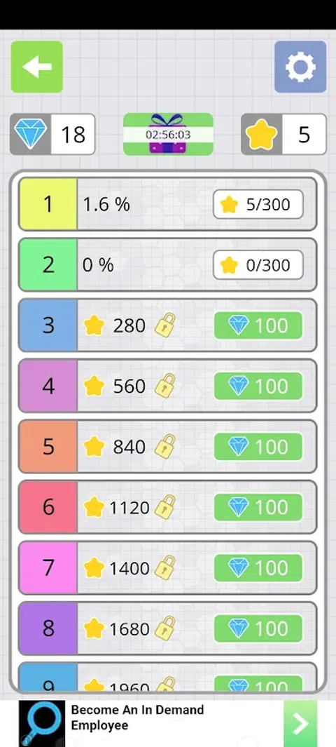 液体拼图是一款有趣且具有挑战性的水分类拼图颜色游戏,在分类拼图的游戏玩法上取得了巨大突破。 对各种颜色的液体进行分类,并根据水的颜色将液体倒入杯子中,使每个杯子充满相同的颜色。 水彩排序拼图游戏界面非常简单,排序操作非常容易,但是它可以极大地锻炼您的逻辑能力。 随着颜色和杯子的增加,接水拼图的难度将逐渐增加。丰富而有趣的排序水彩益智游戏关卡在这里等着您来挑战!享受液体拼图:水彩分类拼图游戏! 特点: 一根手指控制完成液体分类游戏 数以千计的颜色分类浇注游戏关卡 运行内存小,但水分类体验良好 简单易玩,难于精通的水上游戏 享受倒水的乐趣,消磨时间的最佳选择 随时随地玩液体排序拼图 通过颜色分类水上游戏锻炼大脑 支持手机和平板电脑,享受水连接拼图 在线和离线免费玩水上游戏 游戏玩法: 点击任何杯子,将有色水倒入另一个杯子中并进行分类!倒水游戏规则是,只有相同颜色的水并且杯子中有足够的空间才能相互倒水。 尽量不要被水谜题卡住,您可以随时重新启动水分类谜题。 您还可以选择添加分类道具,添加试管以帮助您更轻松地通过分类游戏。 注意:您需要仔细学习游戏分类规则,并熟练地使用它们以使其正确。 只有掌握了液体分类益智游戏规则,您才能快速拼出水瓶的组合并正确分类。 令人上瘾的水分类益智游戏,尝试对杯子中的液体进行分类并填充杯子。当所有的杯子都按照相同的颜色分类时,就是胜利。彩色益智游戏具有挑战性和乐趣,可以锻炼您的大脑!如果你喜欢排序水彩拼图,你一定会对这个水上游戏感兴趣! 液体拼图不仅可以锻炼您的大脑,还可以缓解您的情绪,这是有史以来最具挑战性的水分类游戏之一。 展示你有多聪明! 排序并成功