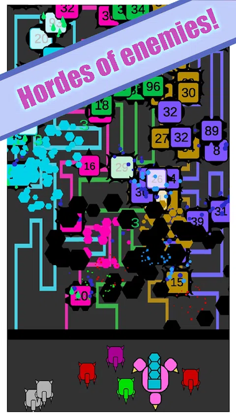 尝试克服成群的敌人,每波敌人都会变得越来越强大。击落强大的最终首领。在你的生命耗尽之前降低他们的健康!敌人会在不同的路径上生成。召唤宠物对敌人施法。你的小飞船可以做的比你想象的更多! 耕种黄金以在商店中购买不同的炫酷枪支和太空飞船。此外,您可以购买包含独特攻击修饰符的箱子,供您和您的宠物使用!升级商店还可以增加这些攻击的统计数据和宠物数量。您最多可以拥有6个宠物(助手),每个宠物都有独特的攻击方式。在毒药、爆炸、冻结和其他魔法攻击之间选择!发射具有不同攻击类型的子弹。打开箱子以获得更好的统计数据和攻击,根据自己的品味和偏好建立自己的小军队,成为太空传奇