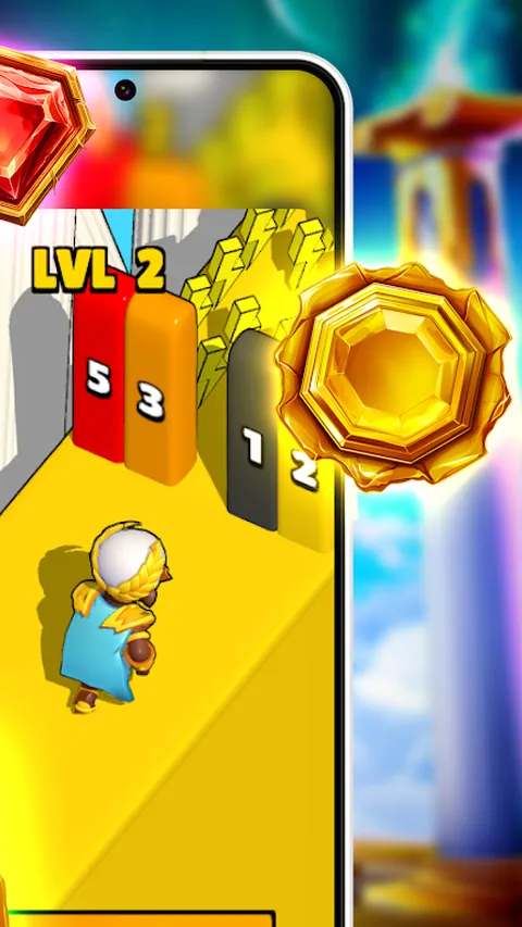 游戏的目标是左右移动带有数字的墙壁,避免与其他障碍物碰撞并收集闪电,这将有助于摧毁墙壁。当玩家通过关卡时,他可以增加自己的高度,这将使其更容易克服障碍并达到新的高度。