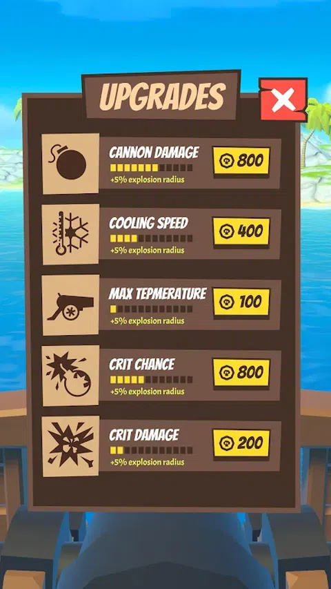 用你的大炮粉碎敌人,升级它并观看热度