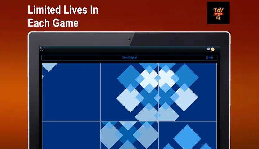 将图像与玩具总动员 4 角色进行匹配的记忆游戏 - 15 个挑战自我的关卡 - 当你赢得更多时获得额外的生命 - 赢得 15 张卡牌,如胡迪、巴斯光年、叉叉等