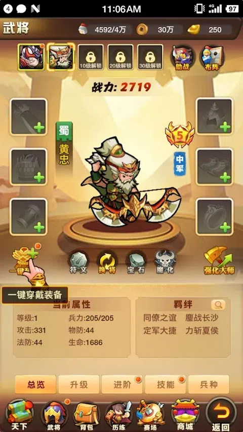 这款游戏为玩家们打造了一个逼真的三国乱世,收集三国武将,组成自己的军队,横扫整个三国世界吧