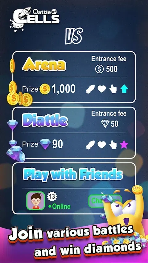 加入细胞之战,挑战来自世界各地的玩家。不管你相信与否,在第一次战斗之后你就会发现它令人上瘾并且非常有趣! 这是一款回合制的 1 对 1 战斗游戏。它可能看起来像一款三消游戏,但当你开始玩它后,你会发现它的意义远不止于此。在《细胞之战》中,你的目标是击败领导你的细胞军团的对手。不同颜色的细胞具有不同的能力—攻击、治疗、增加移动等。使用助推器并制定自己的战略和战术来赢得钻石和奖励! 细胞之战特点: - 多种游戏模式可供选择,无论你是新手还是专业人士 - 涉及大量策略和战术—易学难掌握 - 通过升级和升级力量来增强你的力量 - 可以与朋友和家人一起玩,轻松在多个设备上同步 - 通过免费轮盘旋转和每日奖励赢得金币和钻石 多种模式战斗: - 初学者模式:简单模式,只有 3 种颜色的单元格供初学者开始。 - 高级战斗:4 种颜色的细胞,并添加了能量增强或助推器。奖励可以是钻石或金币。 - 友好对战:您可以随时随地与朋友或家人以这种模式进行游戏。 立即加入并抓住机会在细胞之战排行榜上名列前茅