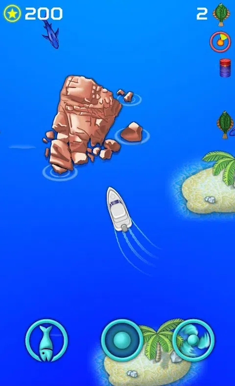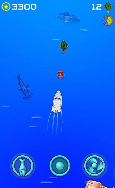 你迷失在一些热带海洋的中间。避开饥饿和愤怒的鲨鱼,并获取一些燃料以逃脱