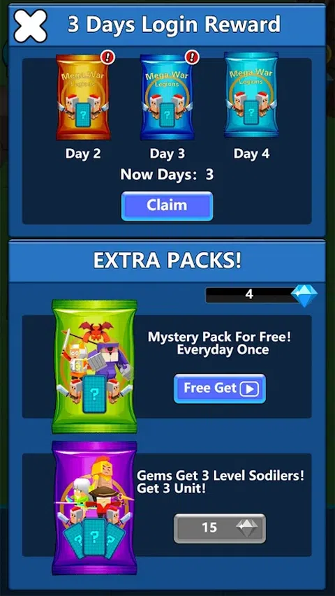Mega War Empire :是一款特殊的即时战略游戏,在 5 个国家(人类、矮人、部落、恶魔、亡灵)之间进行史诗般的战斗。 你可以用独特的单位、物品建立你的传奇军队,并带领你的军队取得最终的胜利。 此外,您还可以在 pvp 模式中与来自世界各地的其他玩家竞争。 你可以找到只存在于传说中的各种种族的单位,如龙、兽人、矮人、精灵、牛头人、巨魔、亡灵…等等。征服并将它们用于策略以取得胜利。 收集并升级数十种单位和物品。 成为战场上的主人! 特征 ● 大规模战斗(200 对 200!) ● 与来自世界各地的其他玩家战斗。 ● 在公开市场上与其他玩家自由买卖卡牌。 ● 与其他玩家聊天。 ● 战场上易学难精,万种策略必须在战斗中运用,才能带领你的军队走向胜利。 ● 猎龙、凤凰、树人…等神秘生物。 ● 突袭各种世界首领