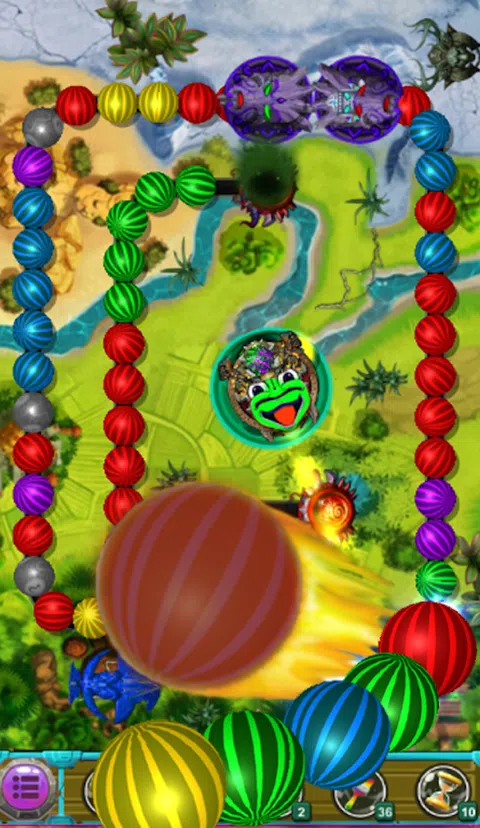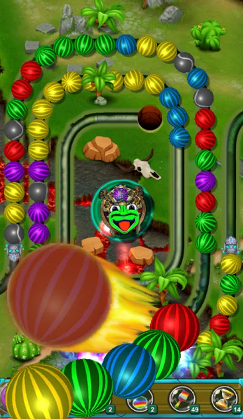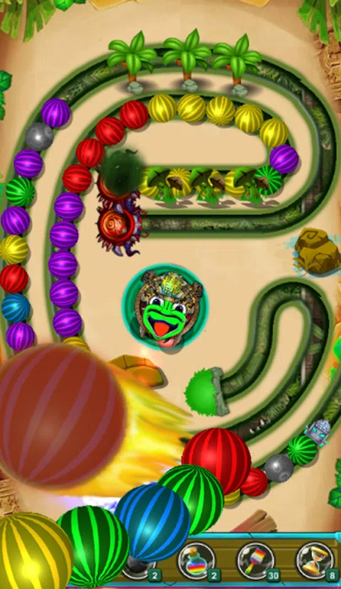 如何玩这个大理石青蛙游戏: - 点击屏幕上要发射弹珠的位置。 - 通过触摸弹珠发射器来交换发射的弹珠。 - 当你遇到麻烦或时间不够时,使用道具来帮助你。 - 匹配 3 个或更多相同颜色的弹珠即可爆炸。 游戏特色: - 良好的图形不会让玩家很快感到无聊。 - 魔法道具:炸弹、火焰、后退、暂停、魔法。 - 令玩家满意的附加效果