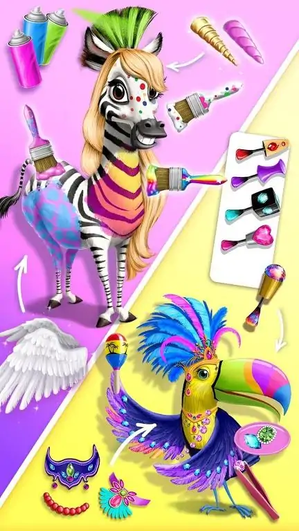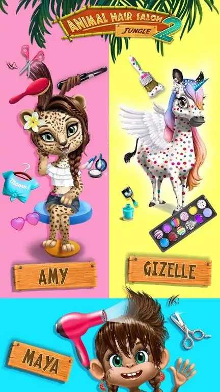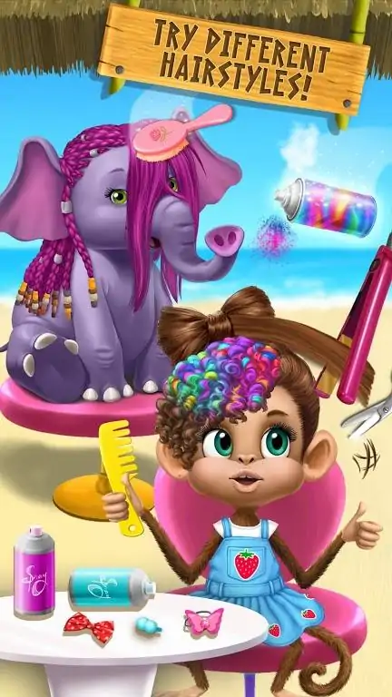 加入成千上万的小朋友,踏上这个发型设计和丛林时尚美容大改造的冒险!在沙滩上和深受喜爱的美容沙龙客户们见面,并玩全新的男孩女孩夏日美容大变装游戏。梳洗,打扮,做造型并设计有趣又疯狂的造型! 孩子们最喜爱的丛林动物和新游戏让丛林动物美发沙龙2 成为最流行的儿童游戏的最佳续集。释放你的想像力,并享受乐趣吧! 旅行前往热带,向花豹艾米,大象莎拉,斑马吉泽莱,猴子玛雅和巨嘴鸟罗莎问好。每一个丛林动物都有自己独特的造型风格和最爱的水疗spa,但是他们都需要夏季时尚小贴士。花豹艾米想用新的妆容和别致的服饰,实现可爱的造型。大象莎拉喜爱在沙滩上做spa沐浴,并且想在沙滩上度过美好假期好好装扮一番。斑马吉泽莱等不及想要尝试新的发型和酷酷的套装啦。猴子玛雅在丛林中玩耍,总是变得脏脏的而且很饿。巨嘴鸟罗莎很想念她的里约嘉年华造型,需要你来帮助她看起来棒棒的。拿起你的发型设计工具,到沙滩上开始游戏吧!