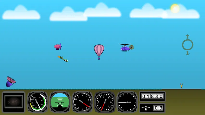 这是一个简单的水平2D游戏。滑翔机从弹射器发射。为此,您必须首先设置发射速度和发射角度。起飞后,您控制滑翔机并必须安全到达跑道并着陆。 游戏很小,几乎不需要任何资源,并且无广告
