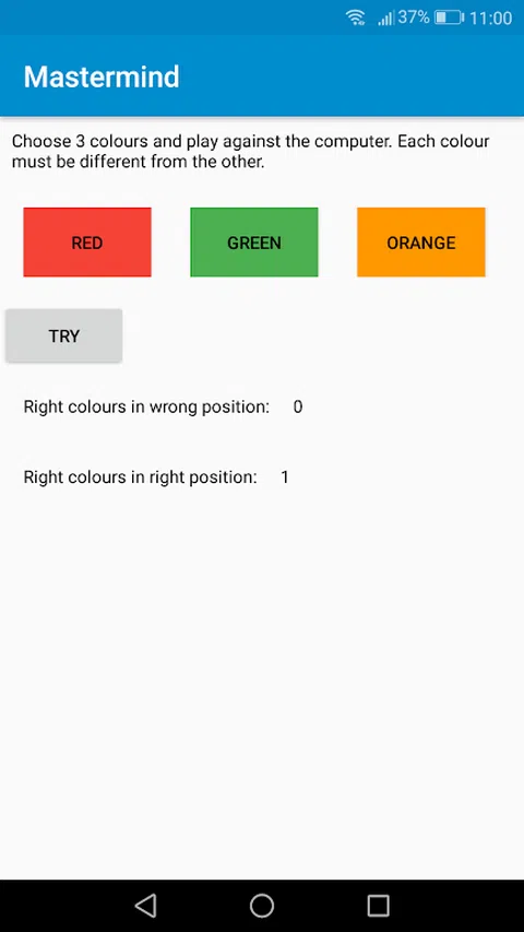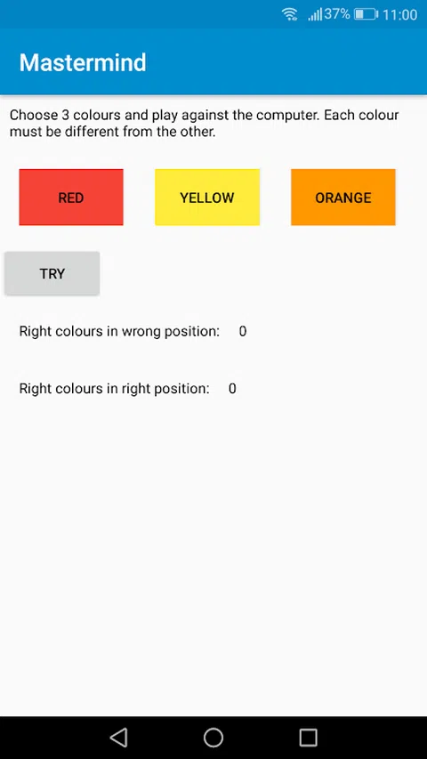 机器将帮助您告诉您何时颜色正确在正确的位置以及何时颜色正确但位置错误。 玩得开心
