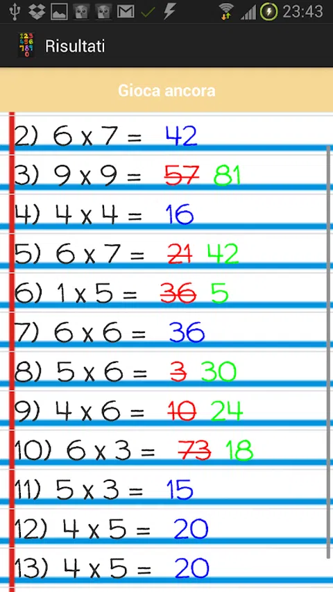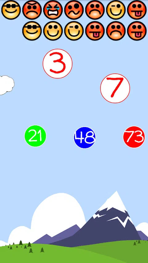 在三个级别之间进行选择: 简单 - 14 个问题 中等 - 20 个问题 困难 - 40 题 单击底部带有正确乘法结果的气球 看到两个顶部气球的微笑,如果它是黄色的,你就给出了正确的答案, 如果是红色,那么你给出了错误的答案。 在最后一个答案之后,您可以阅读比赛摘要。 蓝色的结果是正确的答案, 红色中间线是错误答案,正确答案是绿色。 玩得开心。