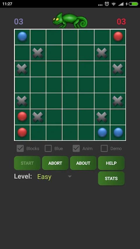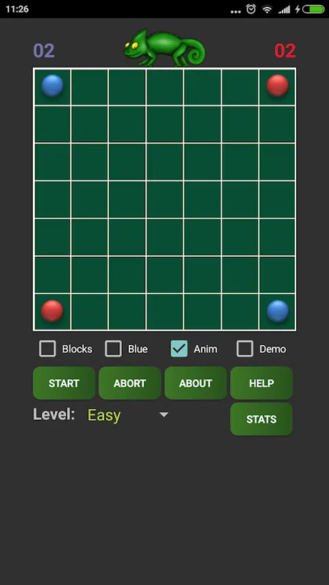 您可以选择从红色(默认)开始,或者如果您更喜欢蓝色,也可以选择。您的目标是用您选择的颜色的碎片覆盖所有面板。您最多可以向任何方向移动两个方块 - 只需移动一个即可复制您的作品。移动后,与您的棋子相邻的所有对手棋子都会变成您的颜色。移动两个,您选择的棋子将传送到您选择的正方形,而不是复制。 仅 0.5 MB,带动画,随机方块选项,具有强大 AI 的不同难度级别,《变色龙》是一款具有挑战性的游戏,非常适合打发时间并挑战自己